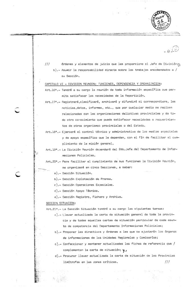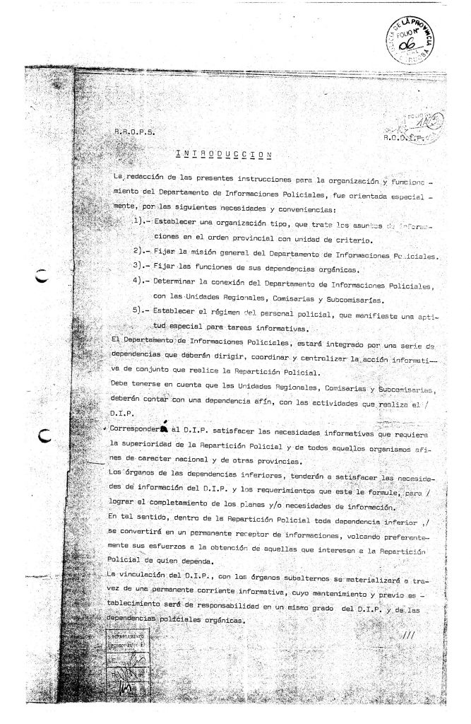 «Organización y funcionamiento del Departamento de Informaciones Policiales»